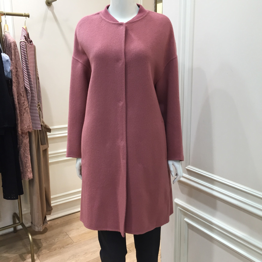 - 넥라인에 리브소재가 사용되어 캐주얼한 느낌을 주는 핸드메이드 소재의 코트입니다.- 앞중심을 스냅으로 여미는 형식이며, 양 옆에 포켓이 있어 실용성이 뛰어납니다.- 장식 없이 깔끔한 디자인으로 다양한 이너와 매치하여 스타일링하기 좋은 아이템입니다.