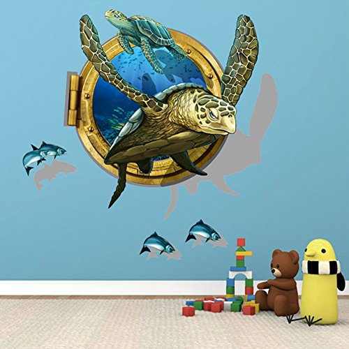 -. Title : 3D Self-adhesive Removable Break Through the Wall Vinyl Wall Sticker/Mural Art Decals Decorator (Large Sea Turtle( 23.6" X 35.4"))