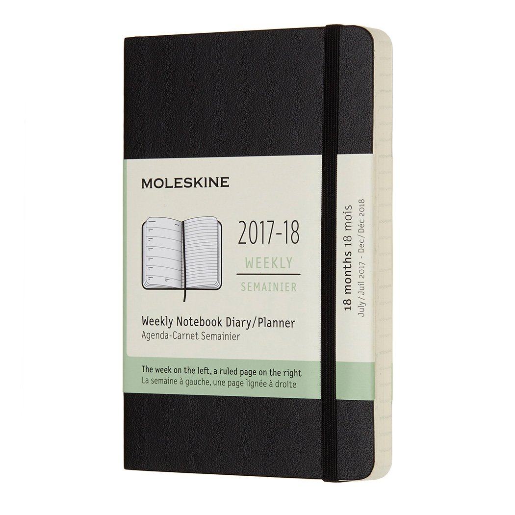 Weekly layout with weekly schedule on the left side and horizontal ruled page on the right side, you can use it from July 2017 until December 2018.