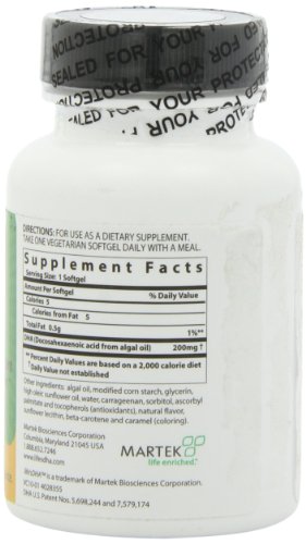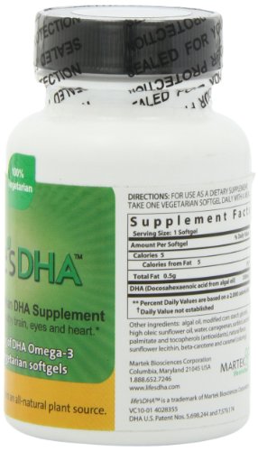 life'sDHATM All-Vegetarian DHA Supplement: A nutritionally complete diet includes omega-3s such as life'sDHATM. DHA (docosahexaenoic acid), an omega-3 fatty acid, is a major structural fatty acid in the brain and eyes, and a key component of the heart. DHA is the only omega-3 that has been shown to support brain, eye and heart health throughout every stage of life. *Yet the typical American diet usually falls short of recommended DHA levels. life'sDHATM vegetarian softgels are encapsulated in a vegetarian capsule making them 100% vegetarian. Unlike other sources of DHA omega-3, life'sDHATM comes from a vegetarian source (algae), grown in an FDA-inspected facility. Because life'sDHATM is not from fish, there is no worry of ocean-borne contaminants. Inform your health care professional about this product. Keep in a cool dry place with cap tightly closed. Keep out of reach of children. Other ingredients: Algal oil, modified corn starch, glycerin, high oleic sunflower oil, water, carrageenan, sorbitol, ascorbyl palmitate and tocopherols (antioxidants), natural flavor, sunflower lecithin, beta-carotene and caramel (coloring). *These statements have not been evaluated by the Food and Drug Administration. This product is not intended to diagnose, treat, cure or prevent any disease. All-Vegetarian softgel - 200mgFeature