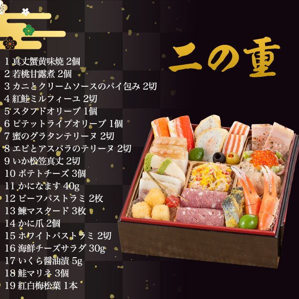 2019年 奥城崎シーサイドホテル 二段重 おせち料理39品目 2人前