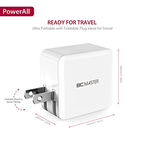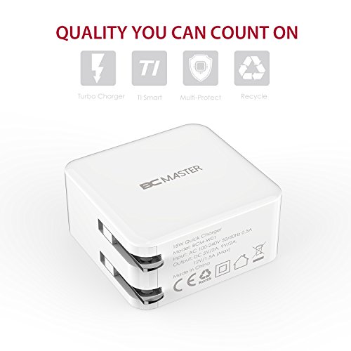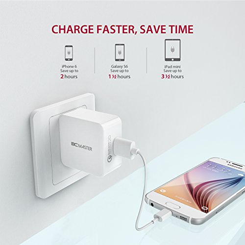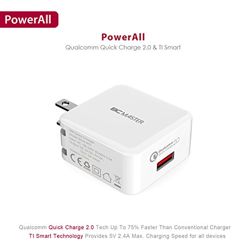 Fast Charge, BC Master Quick Charge QC 2.0 Cell Phone USB Wall Charger with Foldable Plug for Samsung Galaxy S7 S6 Edge, Note 4 5, LG G4 V10 (White)