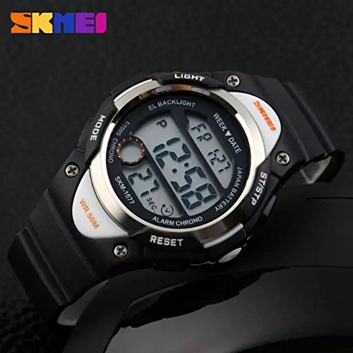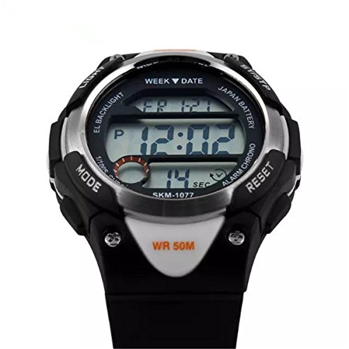 -. Feature : Simple design big LCD sreen display / Time, date, week, alarm clock, stopwatch, LED backlight / Fashionable sporty dial design, military style outlook / Charming for all occasions. Amazing looking watch, a great gift for kids, child,A good gift for Christmas.