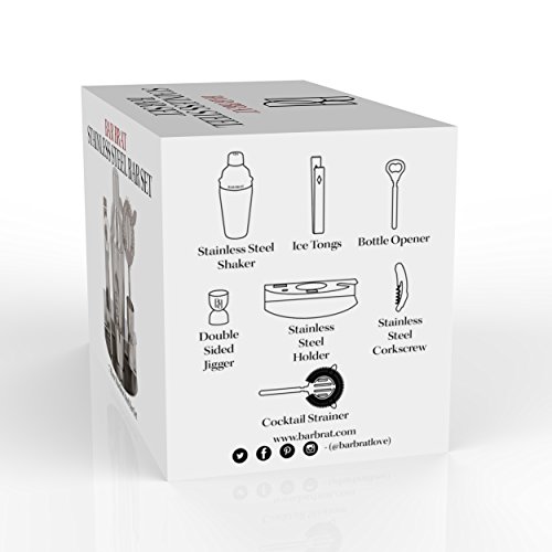 ? 7 PIECE BAR SET MAKES 6 - 10 DRINKS - As a trusted brand with many bar products, Bar Brat provides a complete bundle set - Includes 3 Piece Drink Shaker that is a 24 ounce cocktail shaker set with strong Built-in Cocktail Strainer and a Bonus Double size 1 & ½ oz. jigger