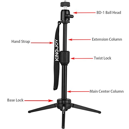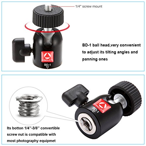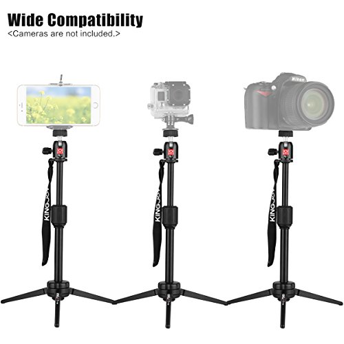 Kamisafe KINGJOY Portable Aluminum Alloy Mini Video Tabletop Tripod with Swivel Ball Head for GoPro Hero 4/3+/3, Smartphones, and Most DSLR Cameras with 1/4" Thread