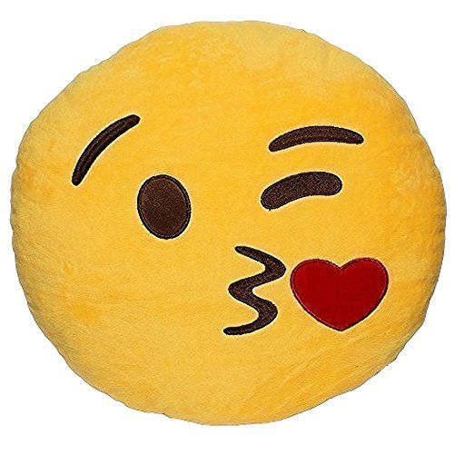 -. Title : Emoji Smiley Kissing Emoticon Yellow Round Cushion Pillow Stuffed Plush Soft Toy