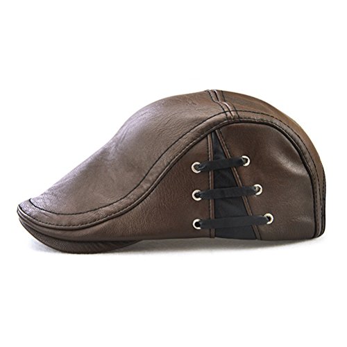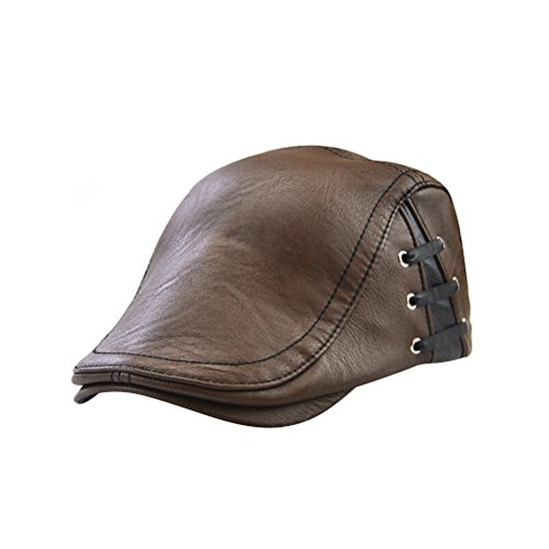 Package Including 1pcs Men's Flat Cap Vintage PU Leather Newsboy Cap Flat Golf Driving Hunting Hat (Light Coffee) 0