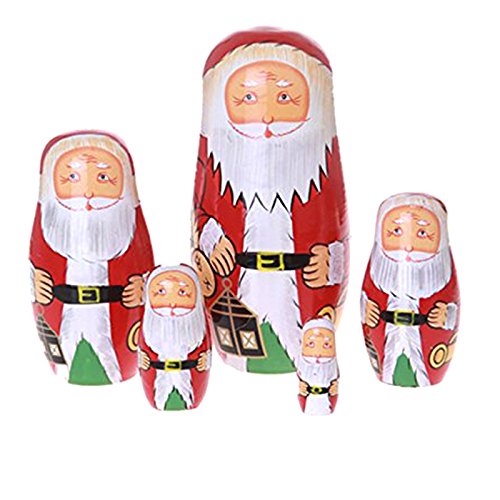 -. Title : xlpace 5 Layer Cute Hand-painted Wooden Beard/Deer Nesting Dolls Matryoshka Animal Russian Doll Father Toy Christmas Gift 5.51''