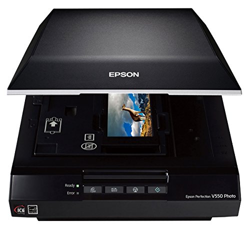 The Epson Perfection V550 Photo features amazing performance and versatility for any project. 6400 dpi resolution ensures images are sharp and vivid, whether you're scanning film, slides, negatives, photos or everyday documents. And, it makes it easy to create enlargements up to 17" x 22". The V550 Photo will automatically upload your scans directly to Facebook, Picasa, popular cloud services and more.1 Plus, at the touch of a button, you can restore old photos and negatives, thanks to Easy Photo Fix. Or, use DIGITAL ICE to remove the appearance of dust and scratches on film. The V550 Photo features energy-efficient, ReadyScan LED technology for high-speed scanning with no warm-up time.Feature