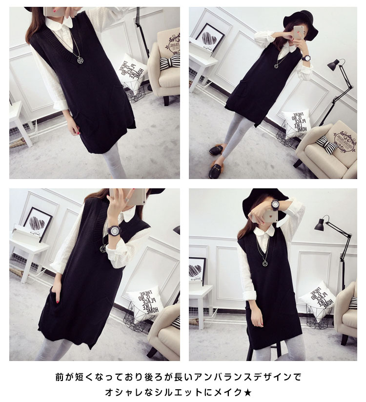 | レイヤードスタイルにピッタリのニットベストが新登場★流行のディテールがたっぷり★前が短くなっており後ろが長いアンバランスデザインでオシャレなシルエットにメイク★シンプルなデザインで、さらっと着て頂けるニットベスト★ | |