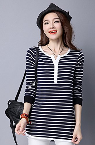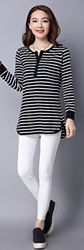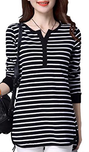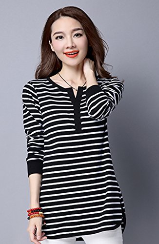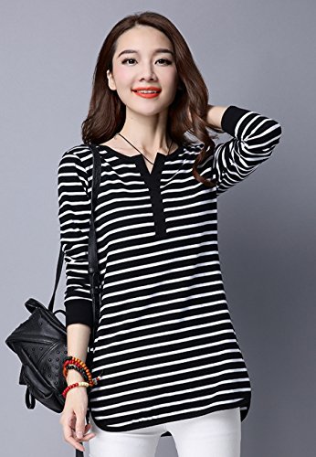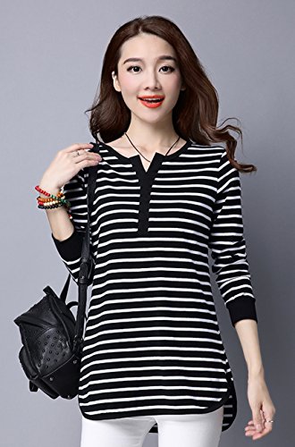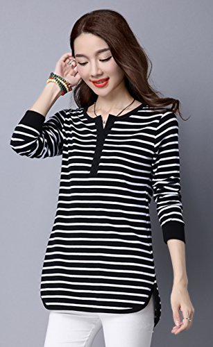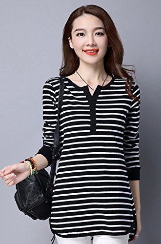 -. Feature : 全2色。黒、白(ブラック、ホワイト)。 カジュアルなモノトーンカラーのボーダー柄トップス。 洗練されたデザイン性とリラックス感を両立した派手すぎないトップス。 定番ボーダーで使い勝手も抜群、優しい肌触りでフィット感が心地良いスタイリッシュなアイテム。 / とってもおしゃれで可愛いく爽やかな印象のある長袖カットソー。 サラッと気軽に着用でき春、夏、秋、冬、どの季節にも使えアウターのインナーにも大活躍間違いなし。 ゆったり感がありラフなので普段着や部屋着やとしてもぴったりなヘビーローテーションアイテム。 シンプルなデザインとシックな色味が合わせやすい定番アイテム。 / デザインがあるのでそのままコーデが完成できかわいい雰囲気を引き出す。 この1着でスタイルが完成しコーディネートのアクセントになってくれる事間違いなし。 スカートやパンツ、ジーンズはもちろんトレンドのワイドパンツや、定番のデニム、どんなボトムスでも相性バツグン。 / 落ち着いた色目でジャケパンやダウンでも着こなせるお洒落でキュートなコーディができるアイテム。 ぽっちゃり女性、ママや主婦の方でも安心して着ていただけるゆったりとしたシルエットで気になる体型カバー効果もあり。 丈も長めなのでお尻すっぽりデザインでVネックが女性らしさを演出致します。 / 【S】着丈69cm 胸囲86cm【M】着丈70cm 胸囲90cm【L】着丈71cm 胸囲94cm【XL】着丈72cm 胸囲98cm【XXL】着丈73cm 胸囲102cm【3XL】着丈74cm 胸囲106cm【4XL】着丈75cm 胸囲110cm※商品画像と実際の色やサイズにつきましては若干の誤差が生じる場合がございます、ご了承ください。