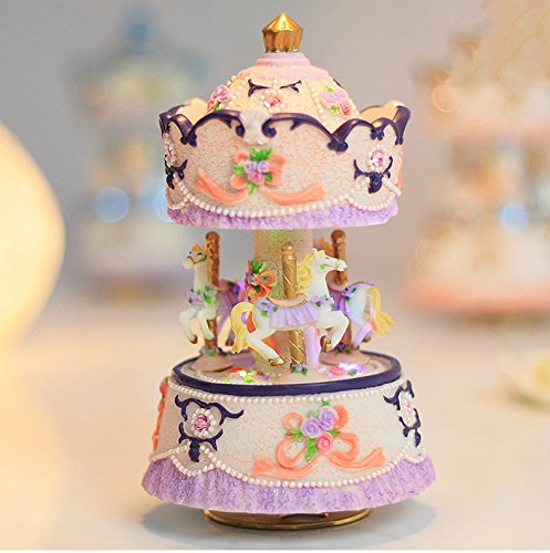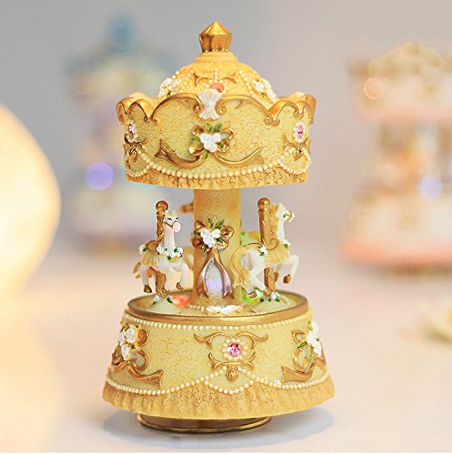 Synthetic resin music box. Romantic carousel music box. Beautiful design, good carving skill. Wind up to drive in the nice music.