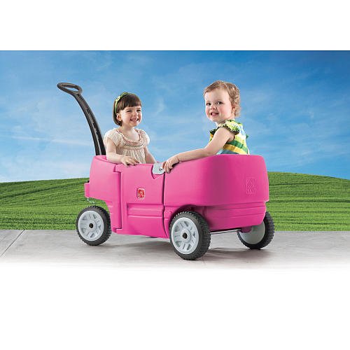 -. Binding : Toy -. Color : pink -. EAN : 0733538813094 -. Feature : The Classic Step2 Wagon exclusively for girls has an easy-latch door opens to two contoured seats and deep leg well with molded-in drain holes. It has a long handle for easy pulling that fold under wagon for easy transport and storage. Two safety seat belts are included. -. IsAdultProduct : 0 -. Label : Step2 -. Manufacturer : Step2 -. MPN : 813000 -. PackageQuantity : 1 -. PartNumber : 813000 -. ProductGroup : Toy -. ProductTypeName : TOYS_AND_GAMES -. Publisher : Step2 -. Studio : Step2 -. Title : Step2 Wagon for 2 - Pink -. UPC : 733538813094