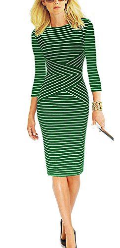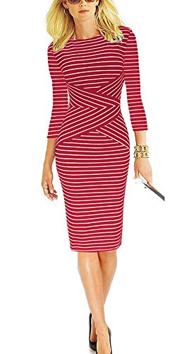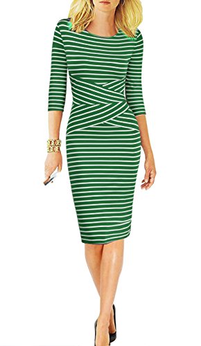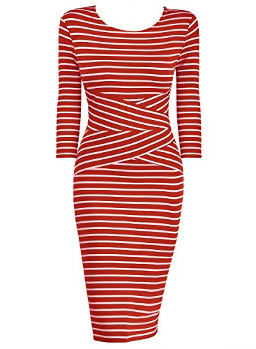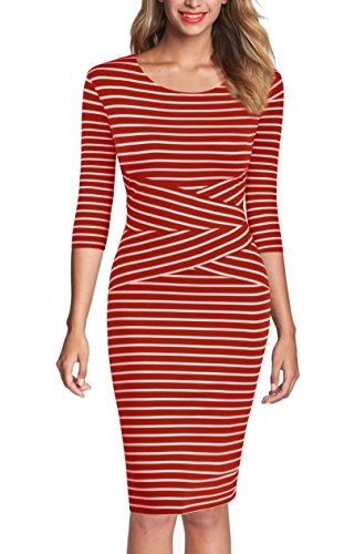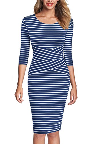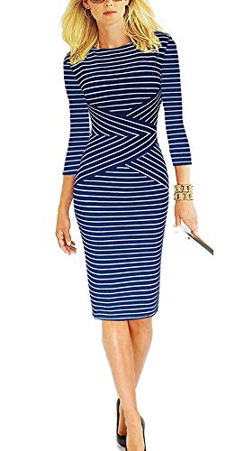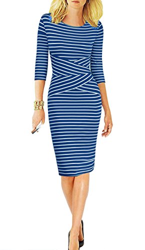 | REPHYLLIS Women 3/4 Sleeve Striped Wear to Work Pencil Dress US SIZE |