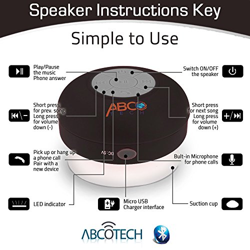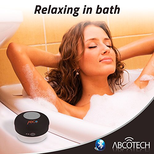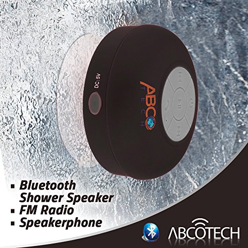 Title : Abco Tech Water Resistant Wireless Bluetooth Shower Speaker with Suction Cup and Hands-Free Speakerphone, Black
