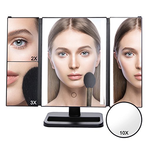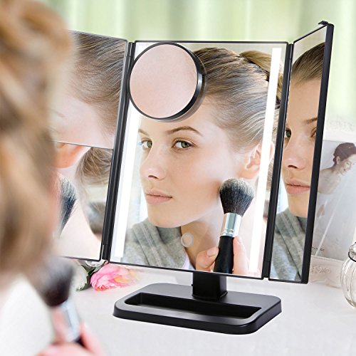 Lifewit Vanity Makeup Mirror Trifold 24 Led Lighted with Touch Screen, 10X 3X 2X 1X Magnification and USB Charging, 180° Adjustable Stand for Countertop Cosmetic Makeup