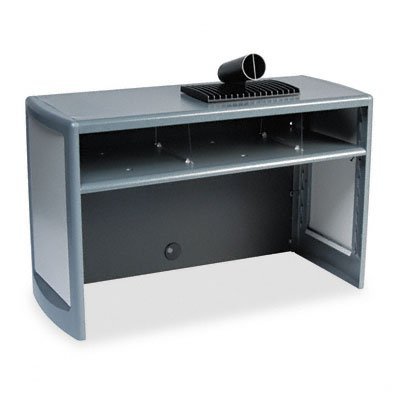-. Feature : Color: Black / Includes pencil cup and CD storage / End panels can be covered with fabric / Space saving / 12.5 in. L x 30 in. W x 18.5 in. HSolid steel construction with high impact plastic end caps. Pe