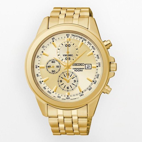 -. Title : Seiko SNDF08 Men's Gold-Tone Chronograph Stainless Steel Watch