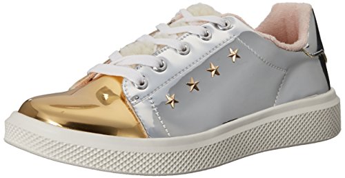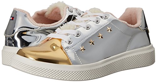 Tommy Hilfiger Kids Girls' Glam Shearling Sneaker, Gold Metallic/Silver, 2 M US Little Kid