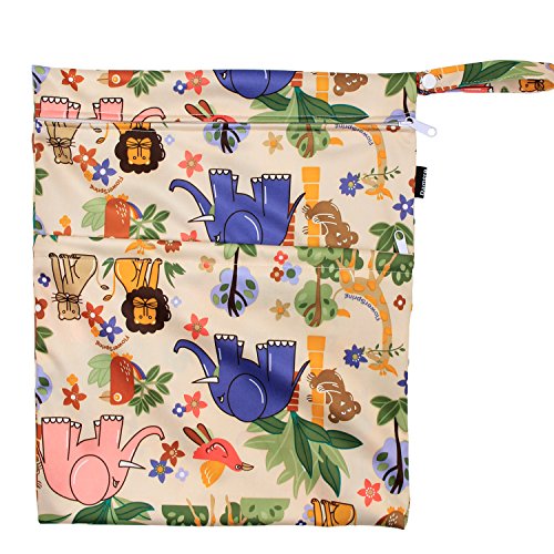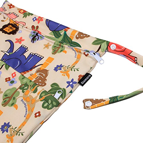 Damero Cute Travel Baby Wet and Dry Cloth Diaper Organizer Bag (Medium, Animals)