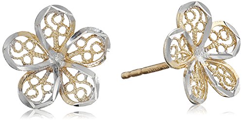 -. Title : 14k Gold Two-Tone Flower Earrings