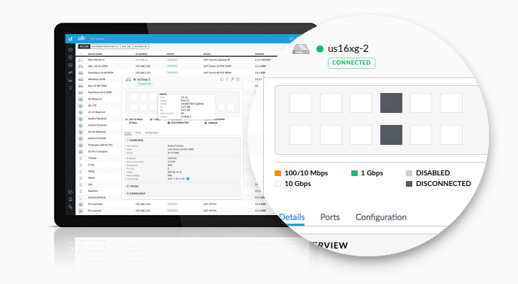 The UniFi® Switch integrates seamlessly into the UniFi Software-Defined Networking (SDN) platform to create a highly scalable, end-to-end system of network devices across multiple locations — all controlled from a single interface.