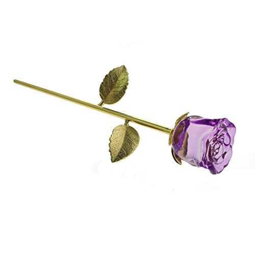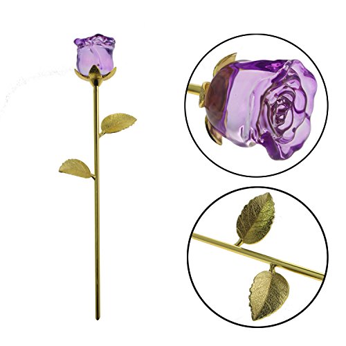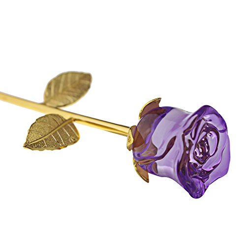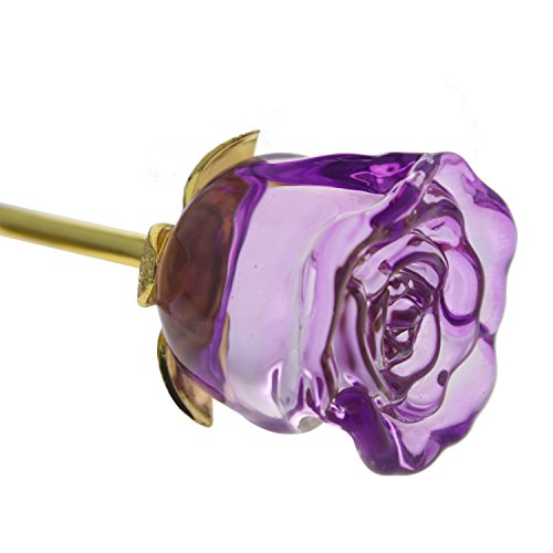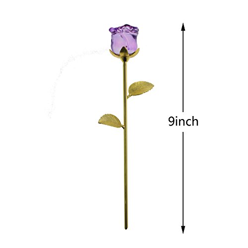 YUYIKES 9 Inches Romantic Love Forever in Bud Purple Crystal Rose Flower, Best Gift for Valentine's Day, Mother's Day, Anniversary, Birthday Gift , Home Wedding Decoration (Purple)