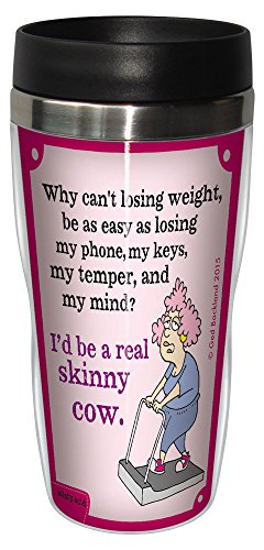 Tree-Free Greetings 16-Ounce Sip 'N Go Stainless Lined Travel Mug, Aunty Acid Skinny Cow (SG78554)