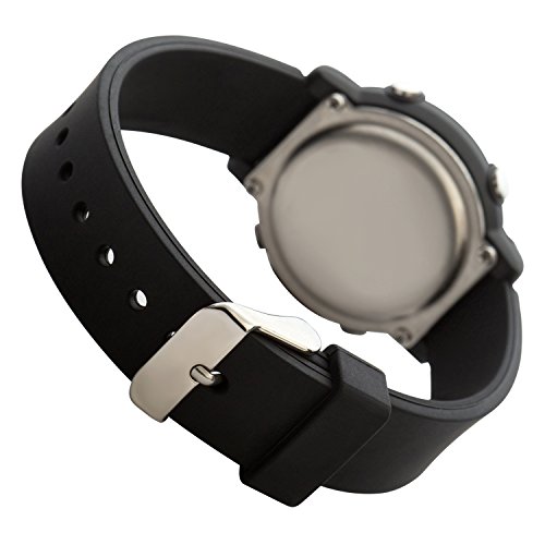 -. Feature : ✔ THE PERFECT FIRST WATCH Child's watch has an easy to read LCD display screen that tells the hour, minute, second and day of the week / ✔ SO MANY FUNCTIONS Kids' watch can display time in 12 or 24 hour format, includes a calendar and a 1/100 second chronograph with a split function / ✔ THE Watch Even Has an EL backlight of six colors to choose from that makes it easy to read at night. / ✔ BUILT-IN ALARM Hourly chime and alarm function helps kids track the hours / ✔ EASY TO READ AT NIGHT EL backlight illuminates the face for easy reading in the dark