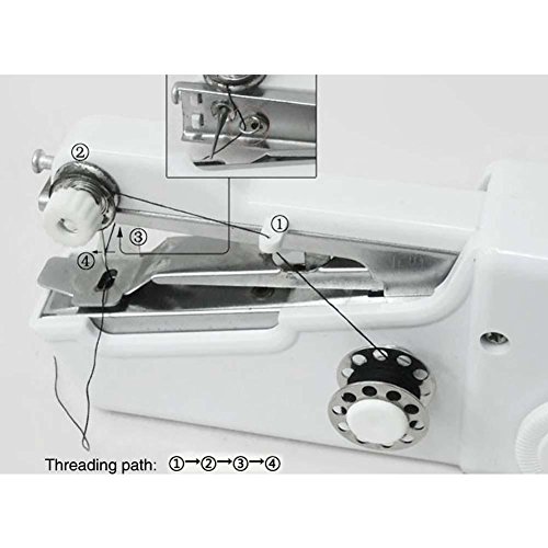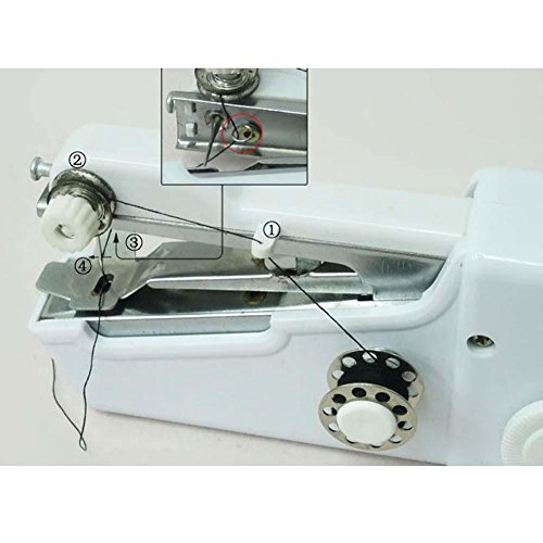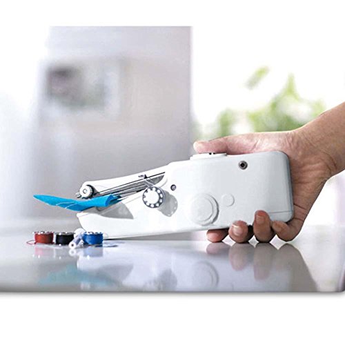 -. Feature : The Hand-Held Sewing Machine is a small, handy, lightweight, easy to carry around piece. / It is funny to make your own handkerchief, apron, gloves,cloth with this practical machine. / You can sew, mend, and work on other small projects with ease without dragging out your bulky sewing machine / It is great for students and handy while travelling. / Material: Plastic,Power: 4 X AA Batteries(not included)