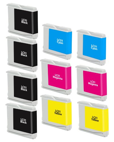 Virtual Outlet ® 10 Pack Compatible Inkjet Cartridges for Brother LC-51 LC51 LC 51 LC-51XL, LC-51BK LC-51C LC-51M LC-51Y High Yield Compatible with Brother DCP-130C, DCP-330C, DCP-350C, DCP-750CW, FAX-1940CN, MFC-240C, MFC-440CN, MFC-5460CN, MFC-665CW, MF