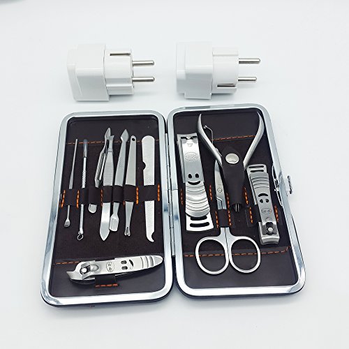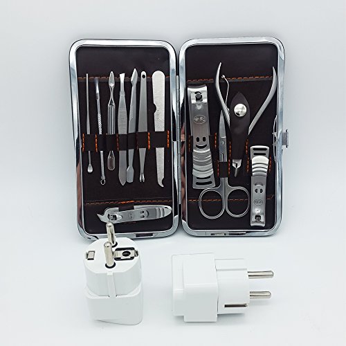 WOTOW travel kits including 2pcs Grounded 2 prong adapter plug and 12 in 1 personal Grooming kit