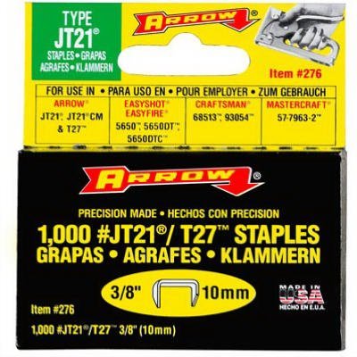 5 Pack Arrow Fastener 276 JT21 3/8" Flat Crown Light Duty Staples 1000 per Package