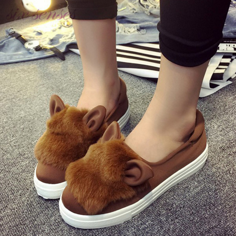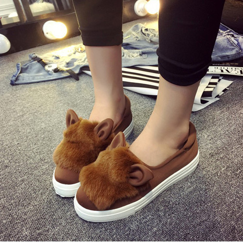 casual shoes: Soft leather cartoon rabbit ears elastic cloth flat shoesDL1238