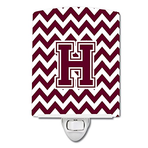 Caroline's Treasures Letter H Chevron Maroon and White Ceramic Night Light, 6 x 4", Multicolor