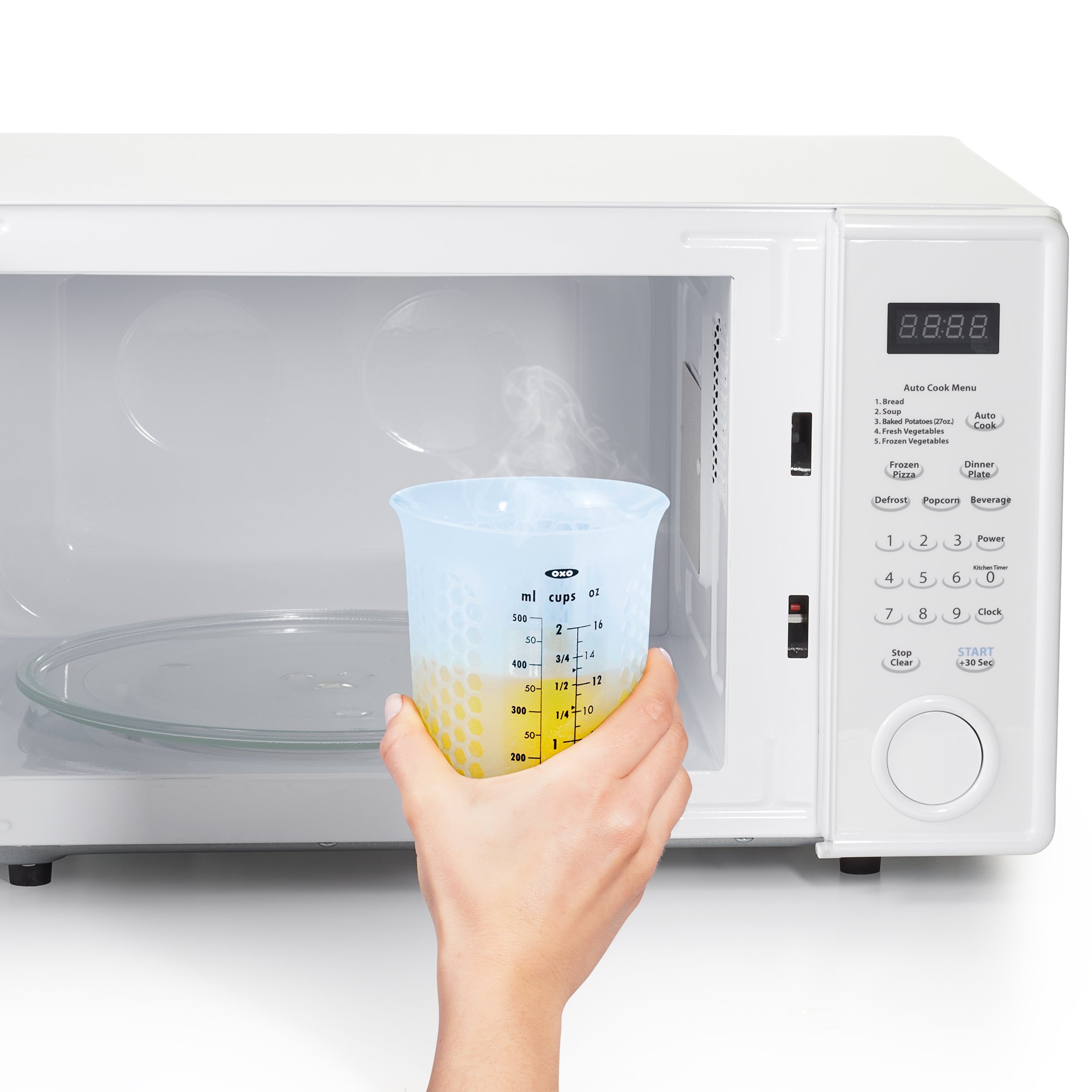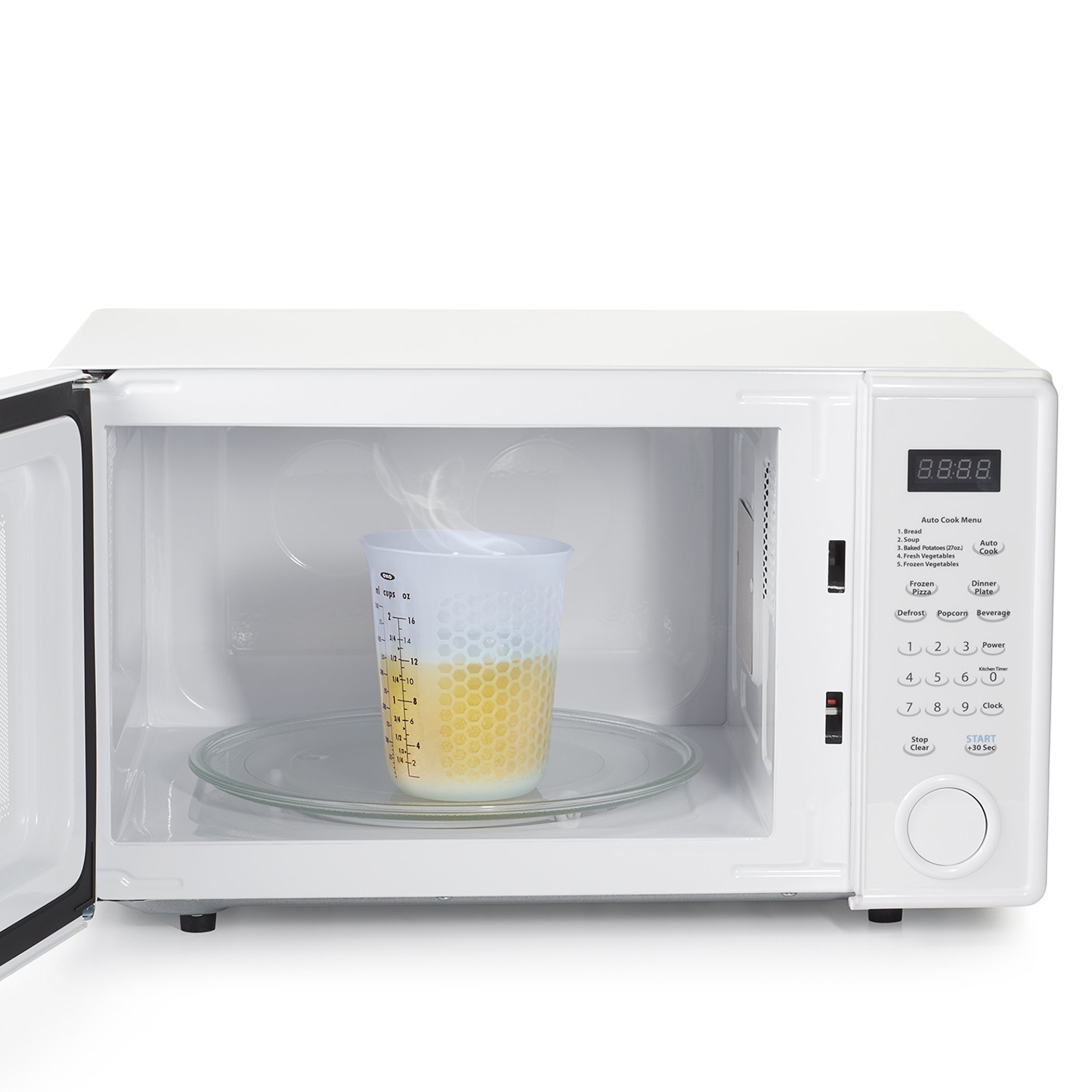 A soft silicone cup can also be used in a microwave oven for warming butter and chocolate