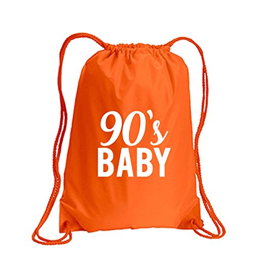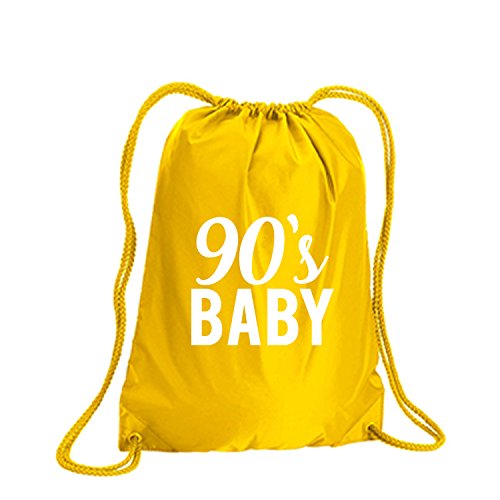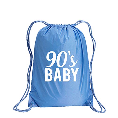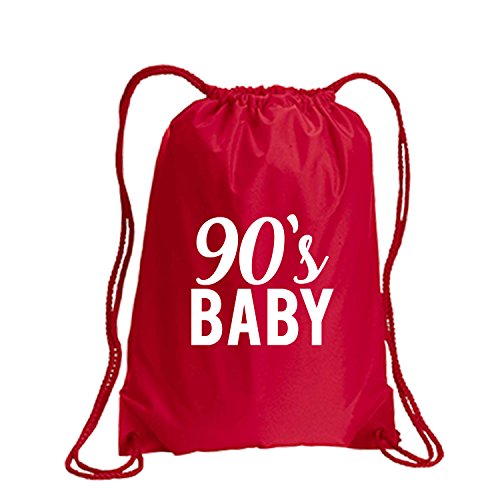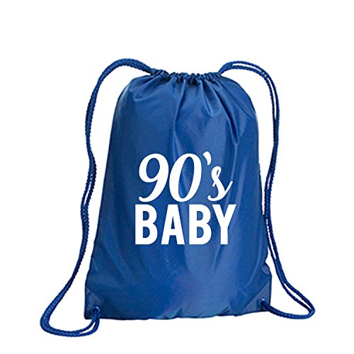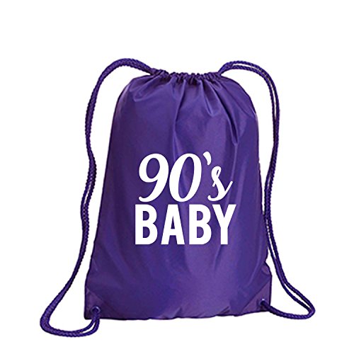 Product Description This durable and stylish nylon tote features "90's BABY" on a cinch pack tote with white ink. Bag comes in small and large sizes and is made of a durable 210 Denier nylon and has color-matched draw cords. Printed in the USA on an imported bag. 0