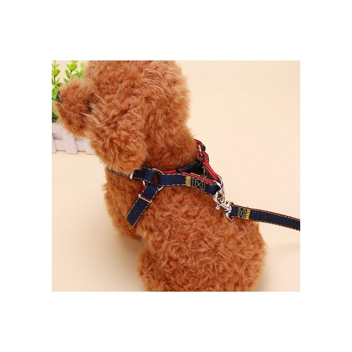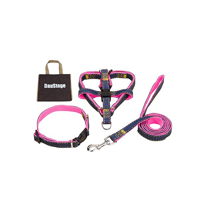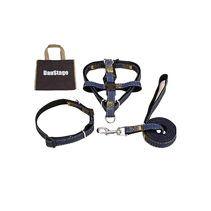 (DauStage) 하네스 리드 목걸이 세트 데님 소재 선택할 수 있 4색 4사이즈 소형 중형 대형견용 토트백 부착