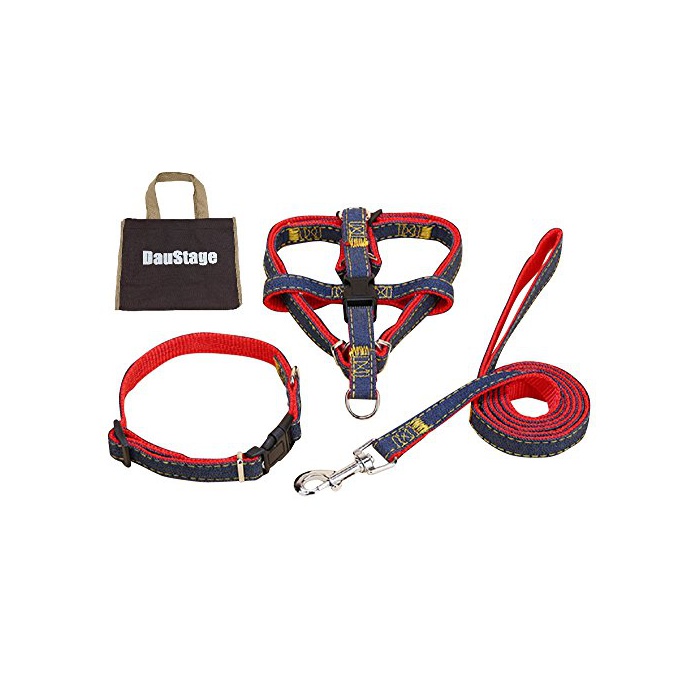 원본상품명:(DauStage) ハ?ネス リ?ド 首輪 セット デニム 素材 選べる 4色 4サイズ 小型 中型 大型 犬用 ト?トバッグ付き