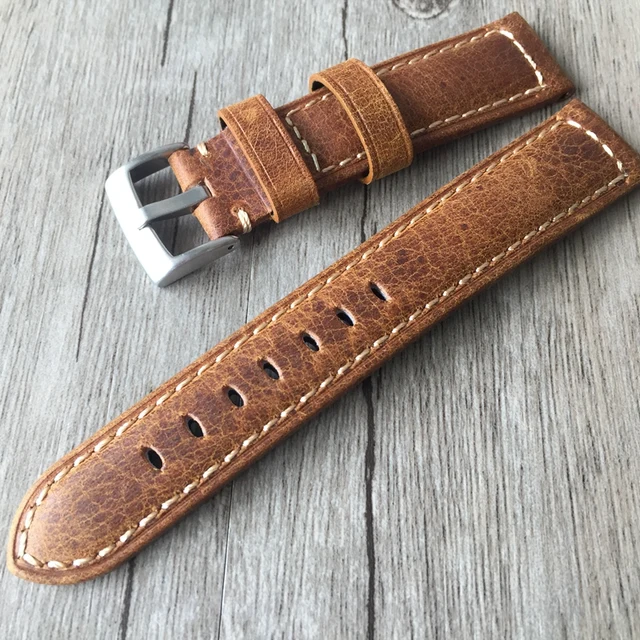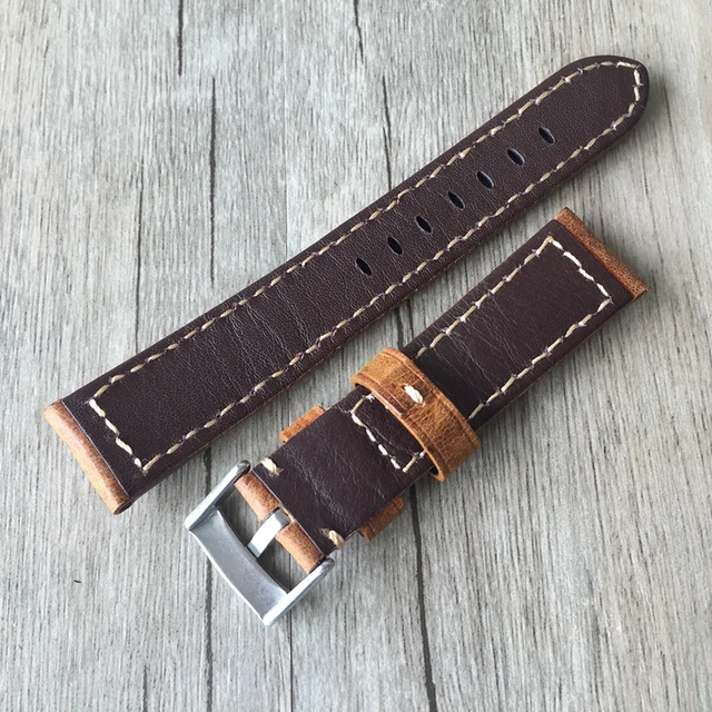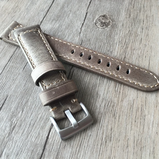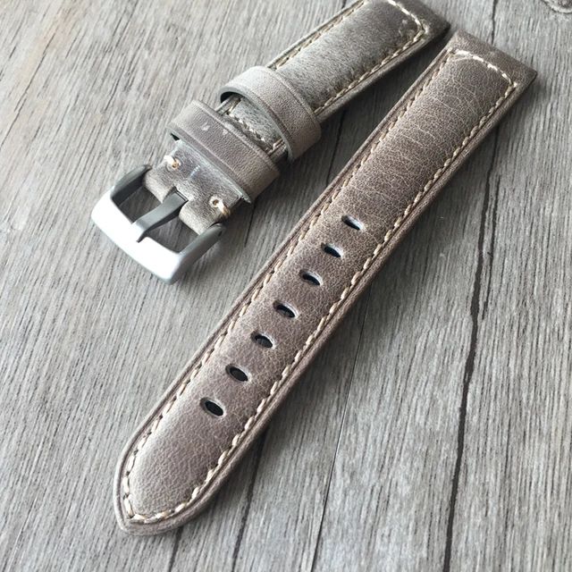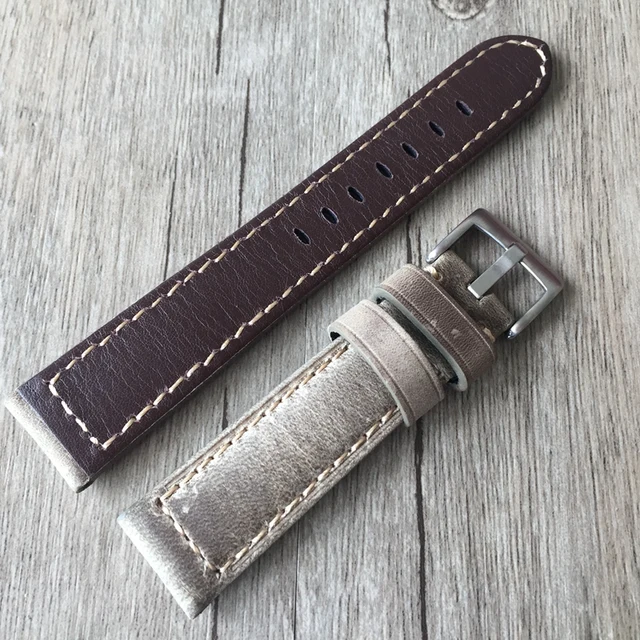 | [해외] 20 미리메터 22 미리메터 오일 왁스 브라운 그레이 이탈리아 정품 가죽 스트랩, 레트로 클래식 남성 여성 손목 벨트 범용 시계 |