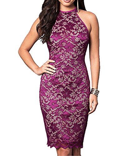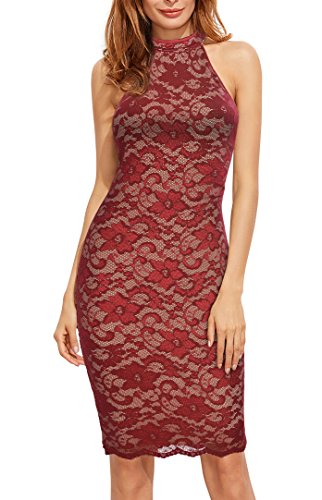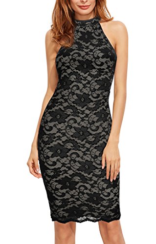 Mmondschein Women's Halter Floral Vintage Midi Cocktail Party Lace Dress