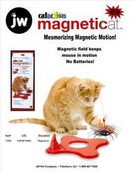-. Feature : Magnetic field keeps mouse in motion / Simple snap & play assembly / Sturdy molded plastic base / Steel cat pole with durable woven play line / No motor, no batteries required