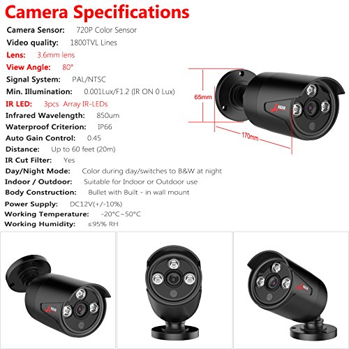 4 AHD (Analog High Definition)720P 1280*720 (1800TVL)camera for excellent video quality & clarity viewing; Cameras built in IR Cut Filter ensures true color under day or night