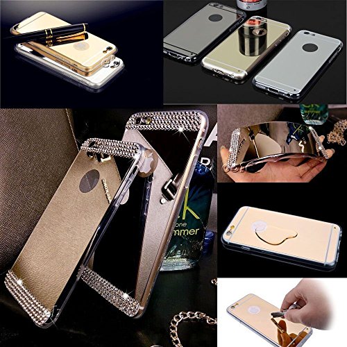 iPhone 6S 6 (4.7") Luxury Hybrid Mirror Case with Crystal Rhinestone and Gold Tint Soft Diamond Case