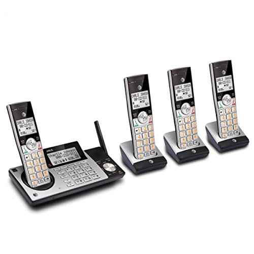 AT&T CL83415 DECT 6.0 Expandable Cordless Phone with Answering System and Call Waiting, Silver/Black with 4 Handset