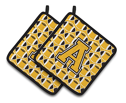 Caroline's Treasures Letter a football black, Old Gold & White Pair of Pot Holders CJ1080-APTHD, 7.5HX7.5W, Multicolor