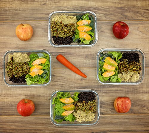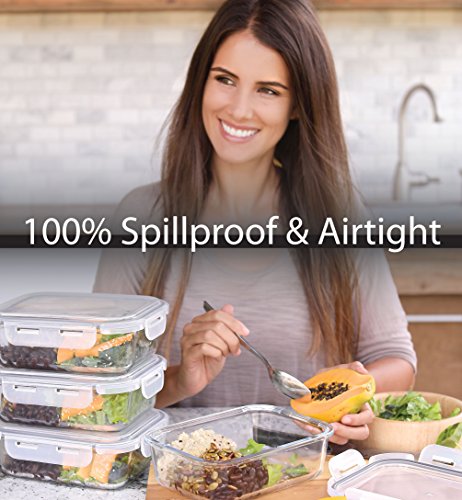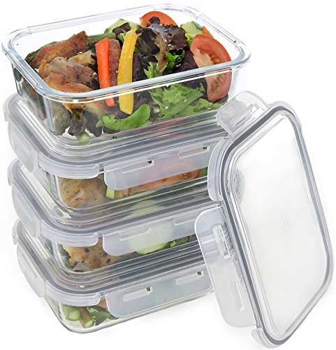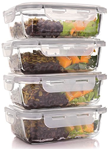 100% SPILL-PROOF AND AIRTIGHT - Four snap shut locks and a silicone ring on the BPA free lid ensure this set of 4 glass food containers are leak and spill proof. That makes them perfect for transporting as well as storing.
