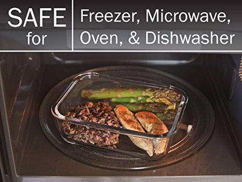 TOXIN-FREE HIGH QUALITY GLASS - High-quality borosilicate glass is a safer alternative to plastic containers that can leach toxins into your food. Thick glass construction makes these 35 ounce one-compartment glass food storage containers durable and shatterproof.