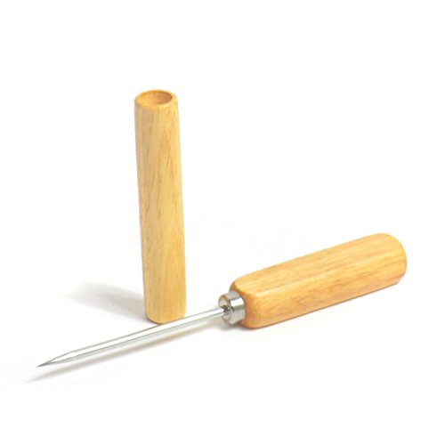 -. Feature : Chips and breaks up block ice easily for chilling all types of drinks with the 8-inch long ice pick, also provides a wooden sheath that fits closely over the blade to protect pick from dulling and prevent injury; / With a single sharp hardened steel point, this ice pick will break chunks of ice from your freezer, ice machine, or other source almost effortlessly; / Squared wooden handle provides a comfortable, sturdy grip and will not roll away when not in use, easy to create ice chunks that melt slower than using ice cubes and won't water down drinks as quickly, great for home, restaurant and bar use; / Not only is this good for breaking up ice, it works on other items as well, such as breaking frozen bulk foods, making a great hole punch for wood and leather; / Overall 8-inch long;