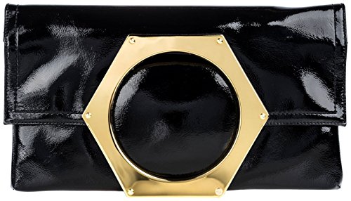 -. Title : Jonathan Adler Goldie Foldover Clutch - Black